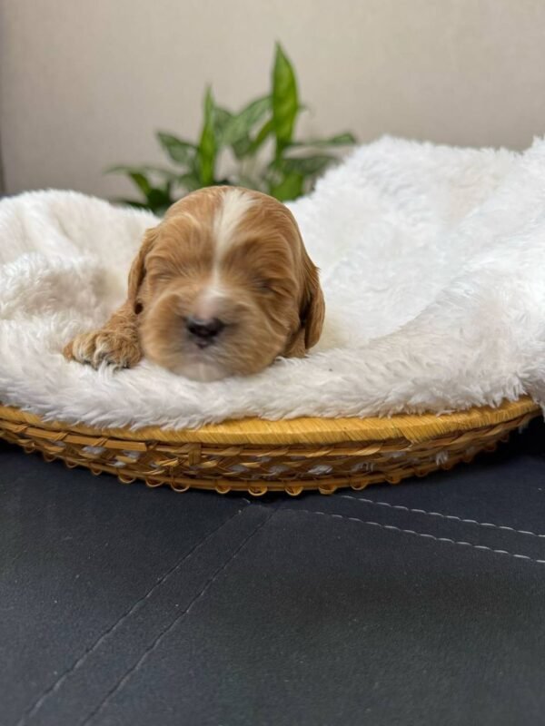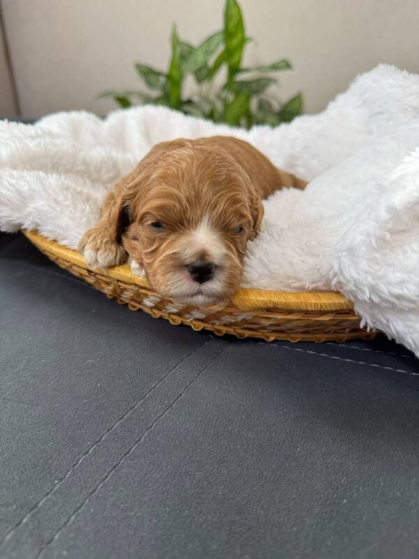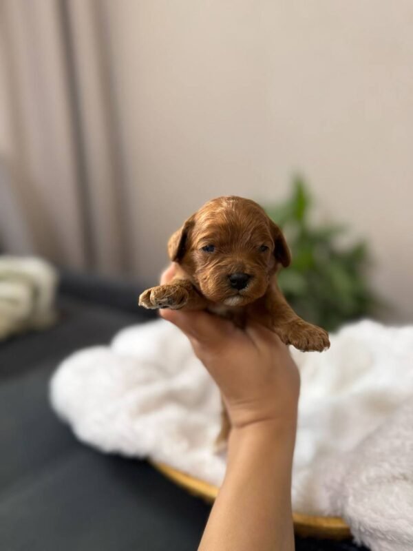 Our Toy Poodles typically start at 2–4 lbs and reach a full-grown size of 4–7 lbs, making them perfect for cuddles and easy to manage in any home.